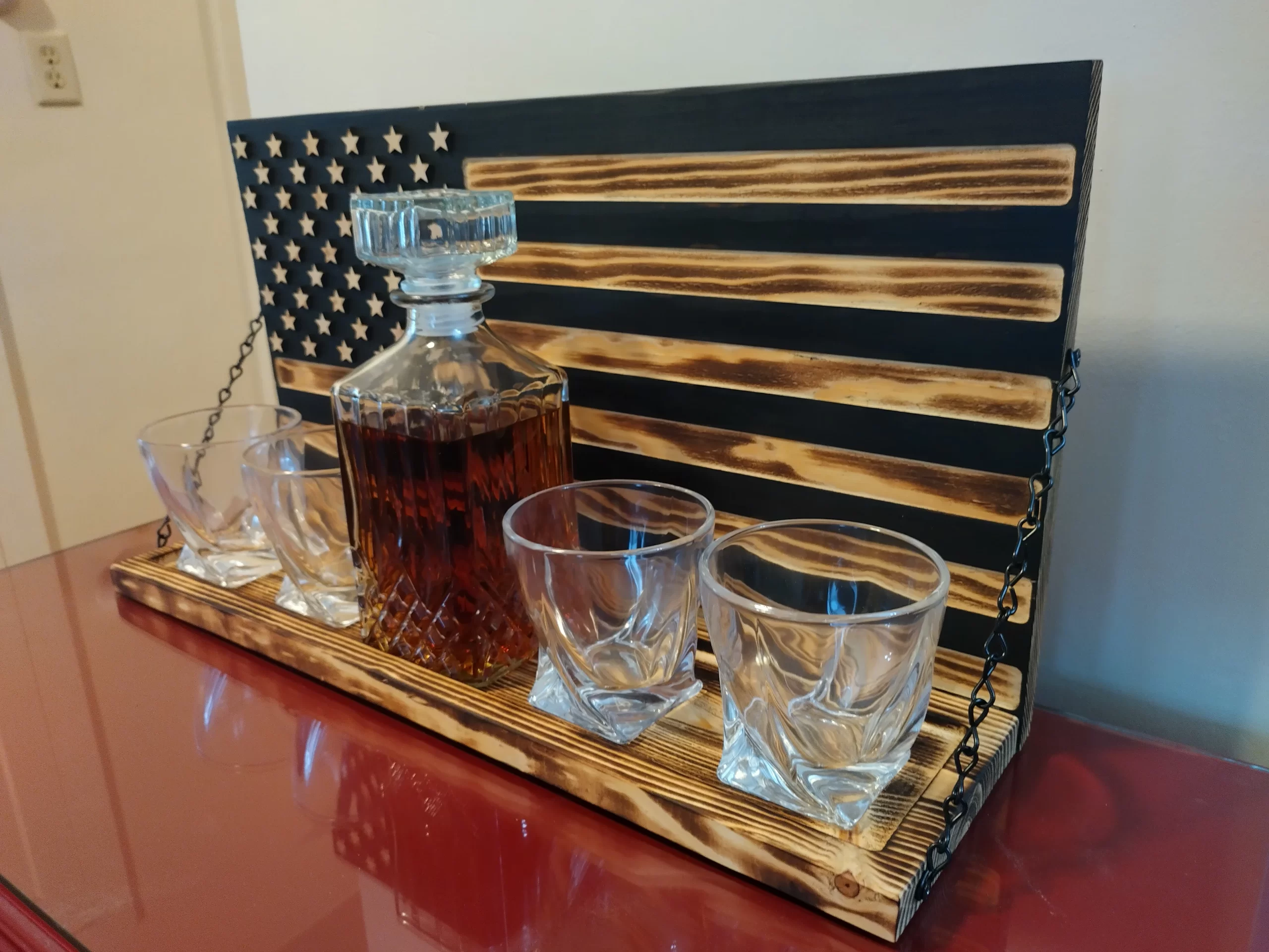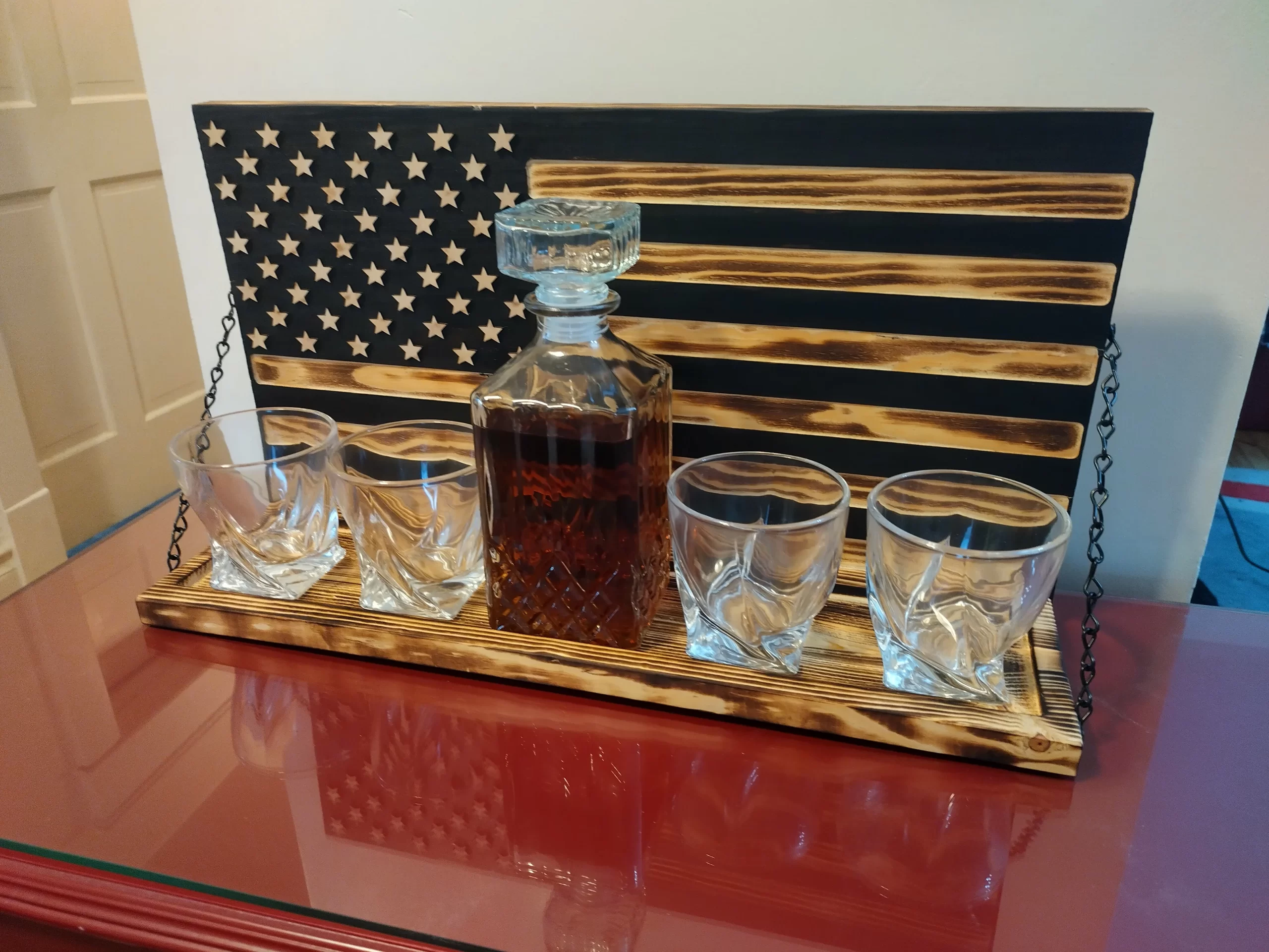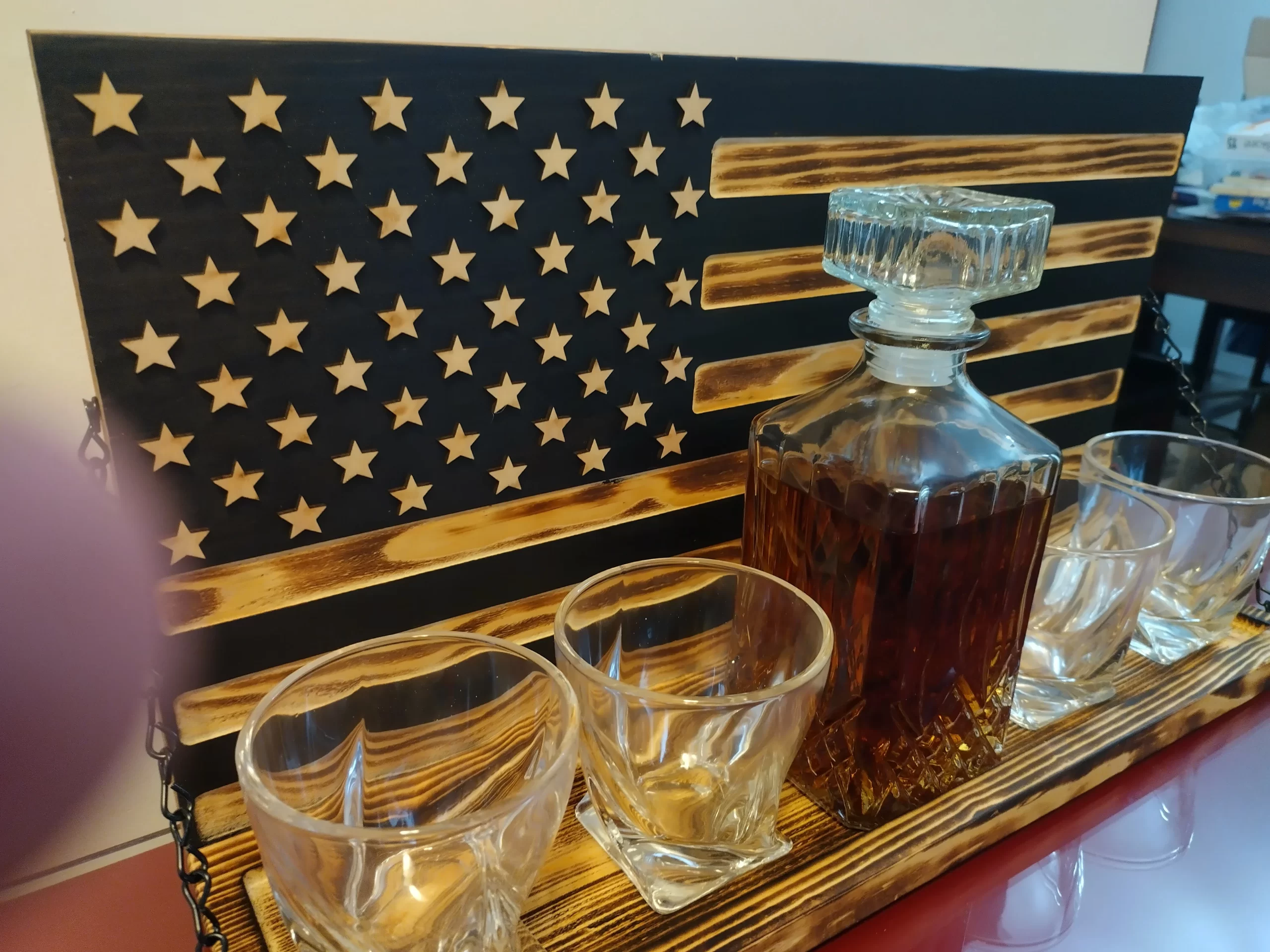 Add a touch of patriotic elegance to your home with our Handmade American Flag Whiskey Rack. Ideal for whiskey lovers and as a unique gift for special occasions.