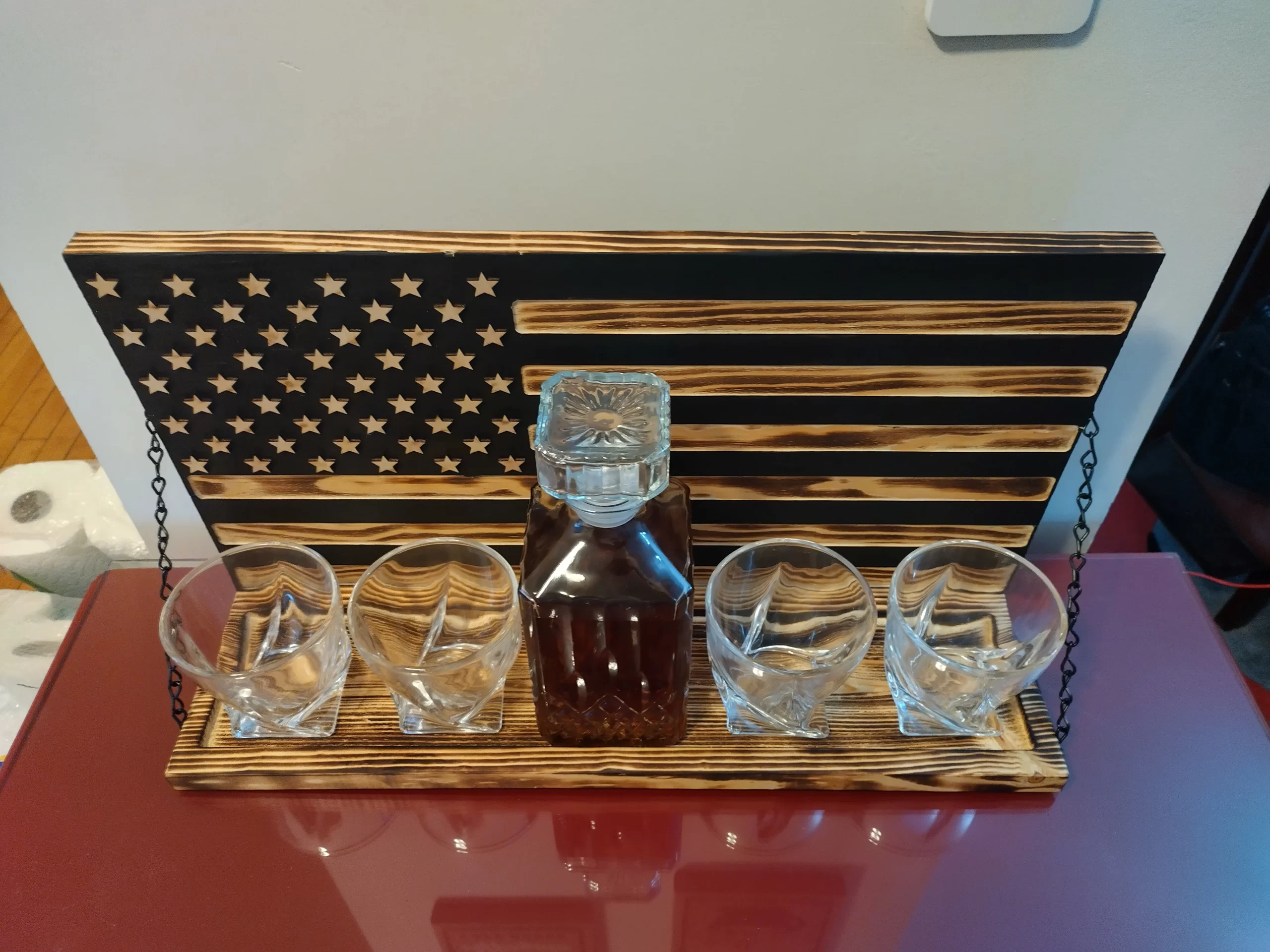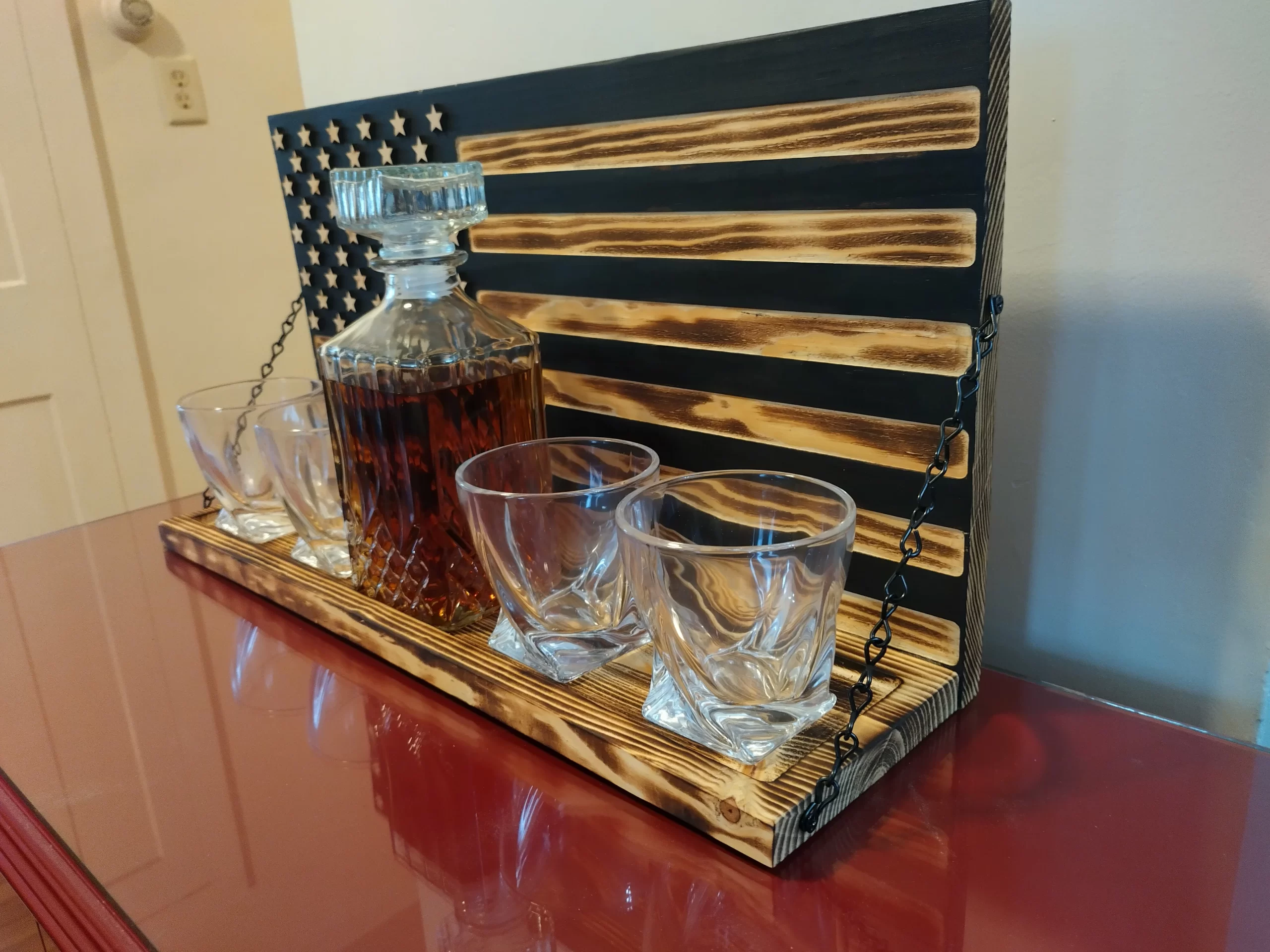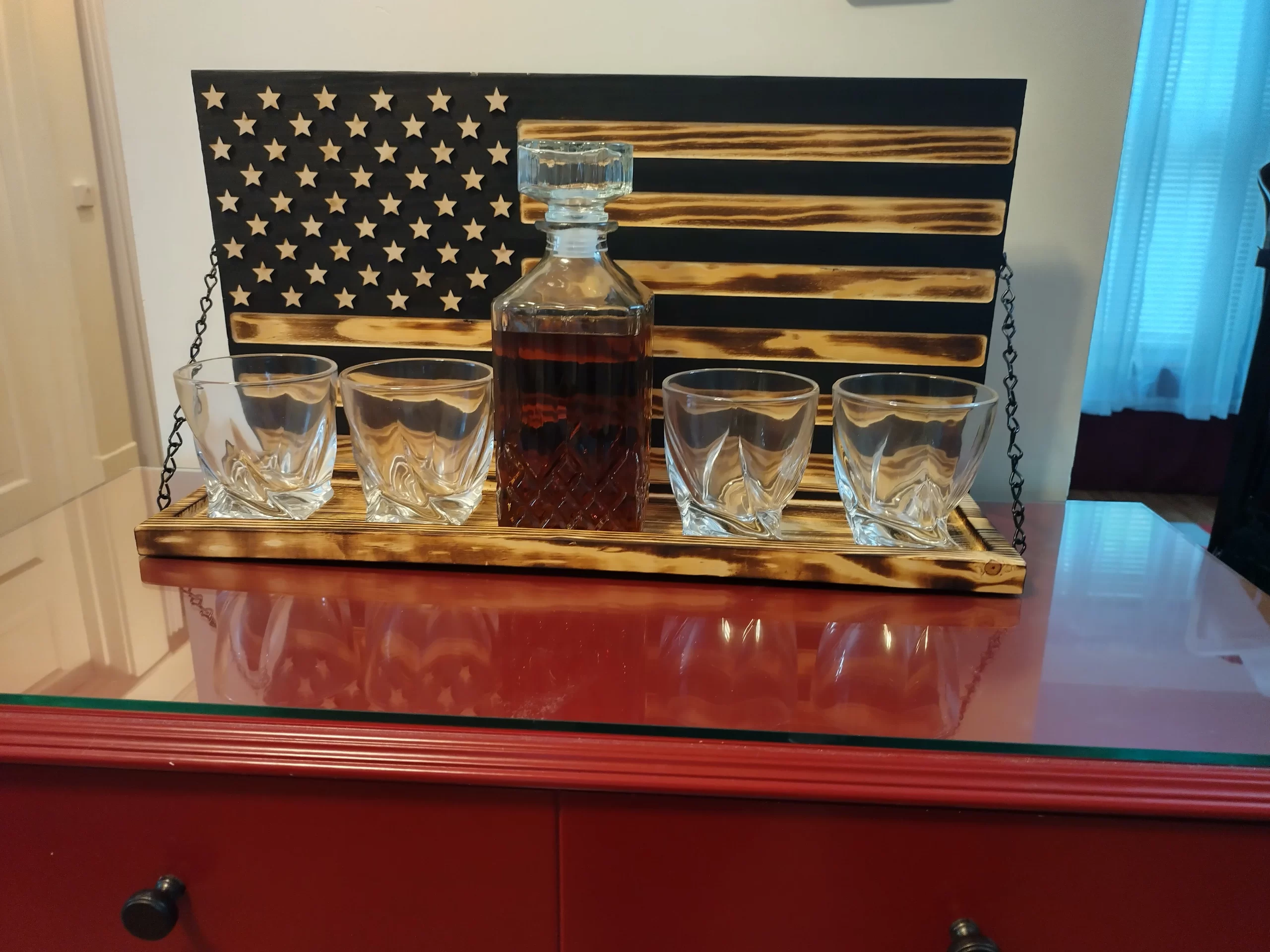 Add a touch of patriotic elegance to your home with our Handmade American Flag Whiskey Rack. Ideal for whiskey lovers and as a unique gift for special occasions.