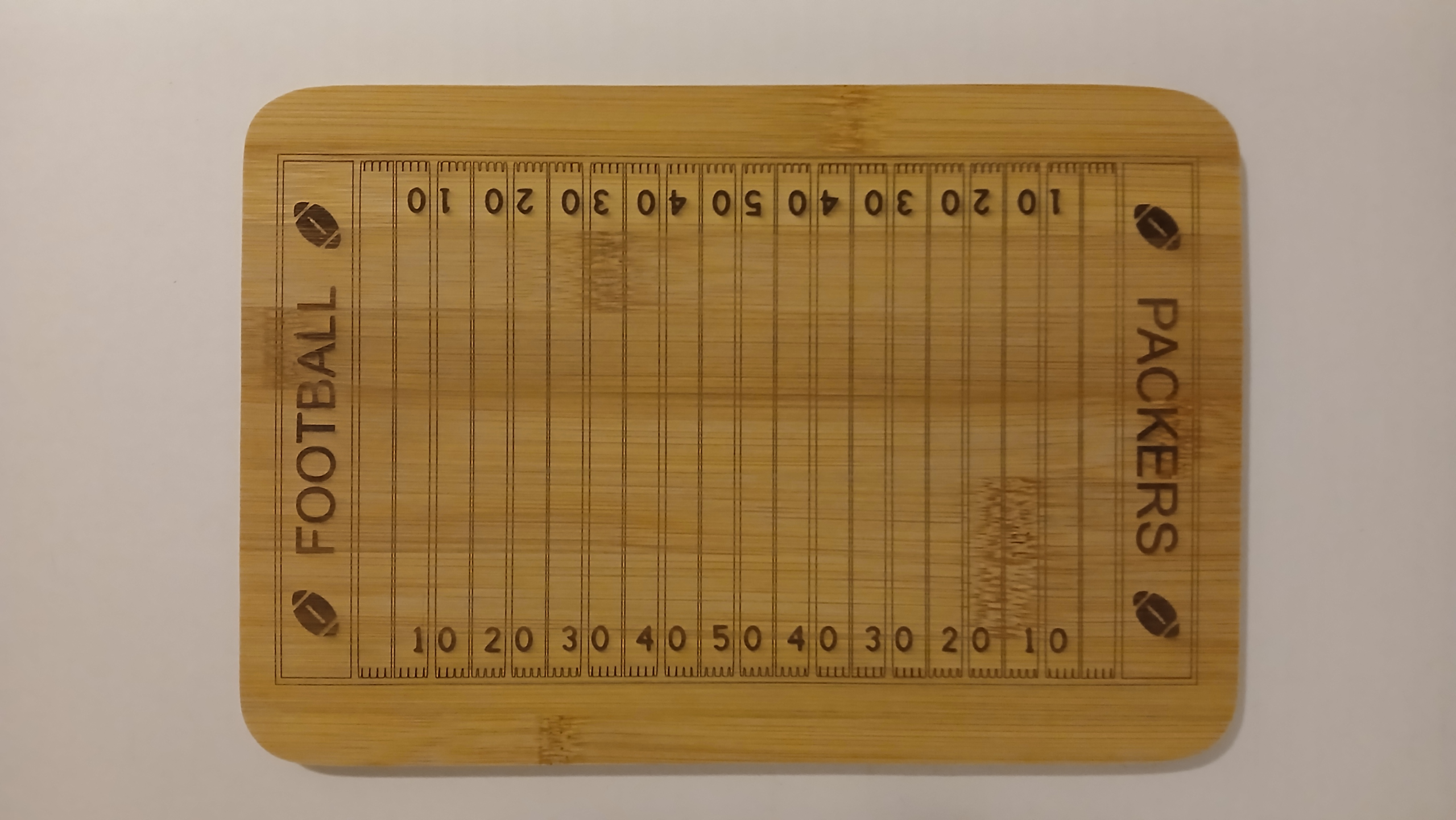 Each board is precisely engraved with a classic football field layout, complete with yard lines and football accents. Its sturdy bamboo construction ensures durability for years of enjoyment, making it a lasting tribute to their favorite sport.