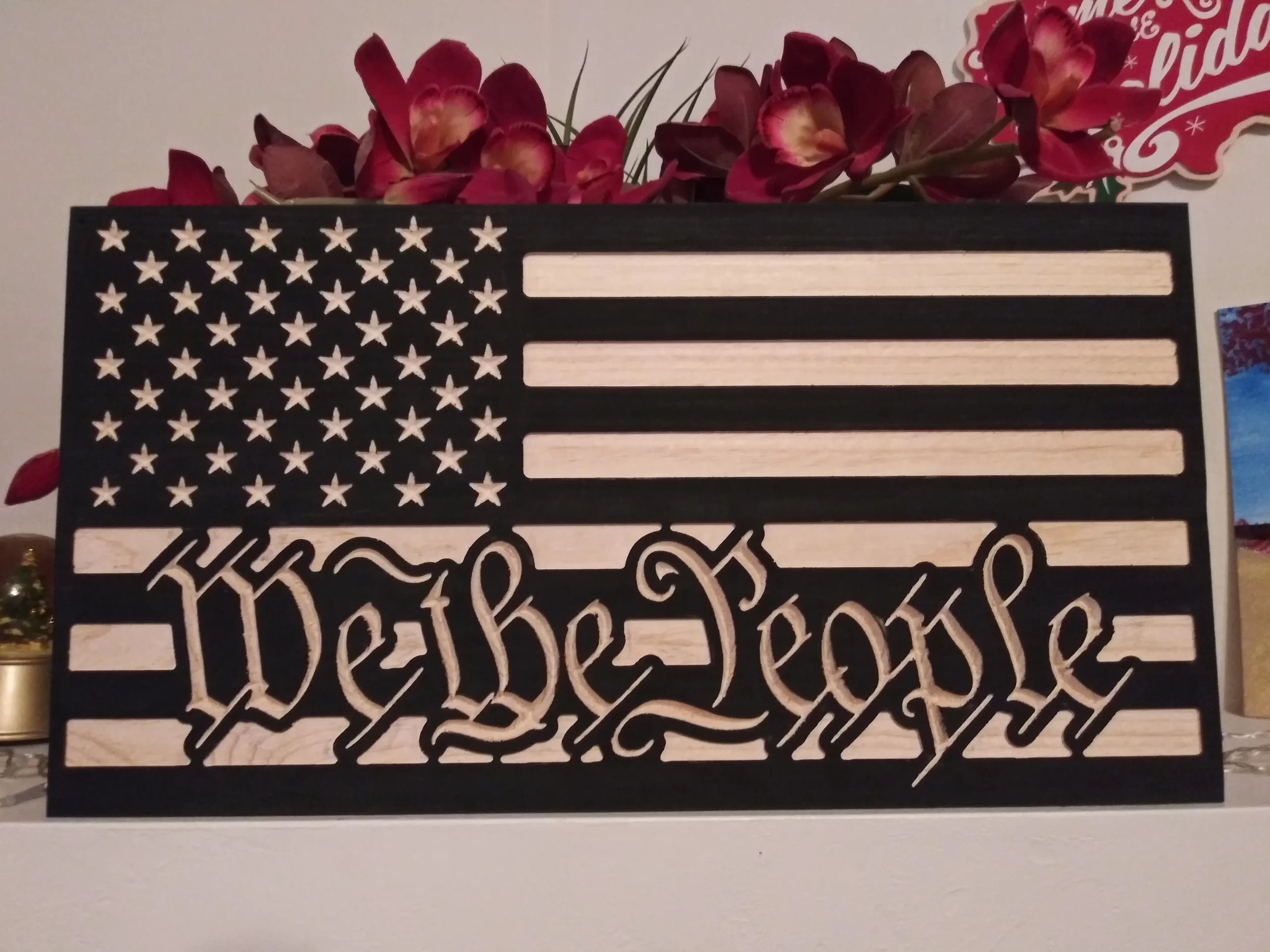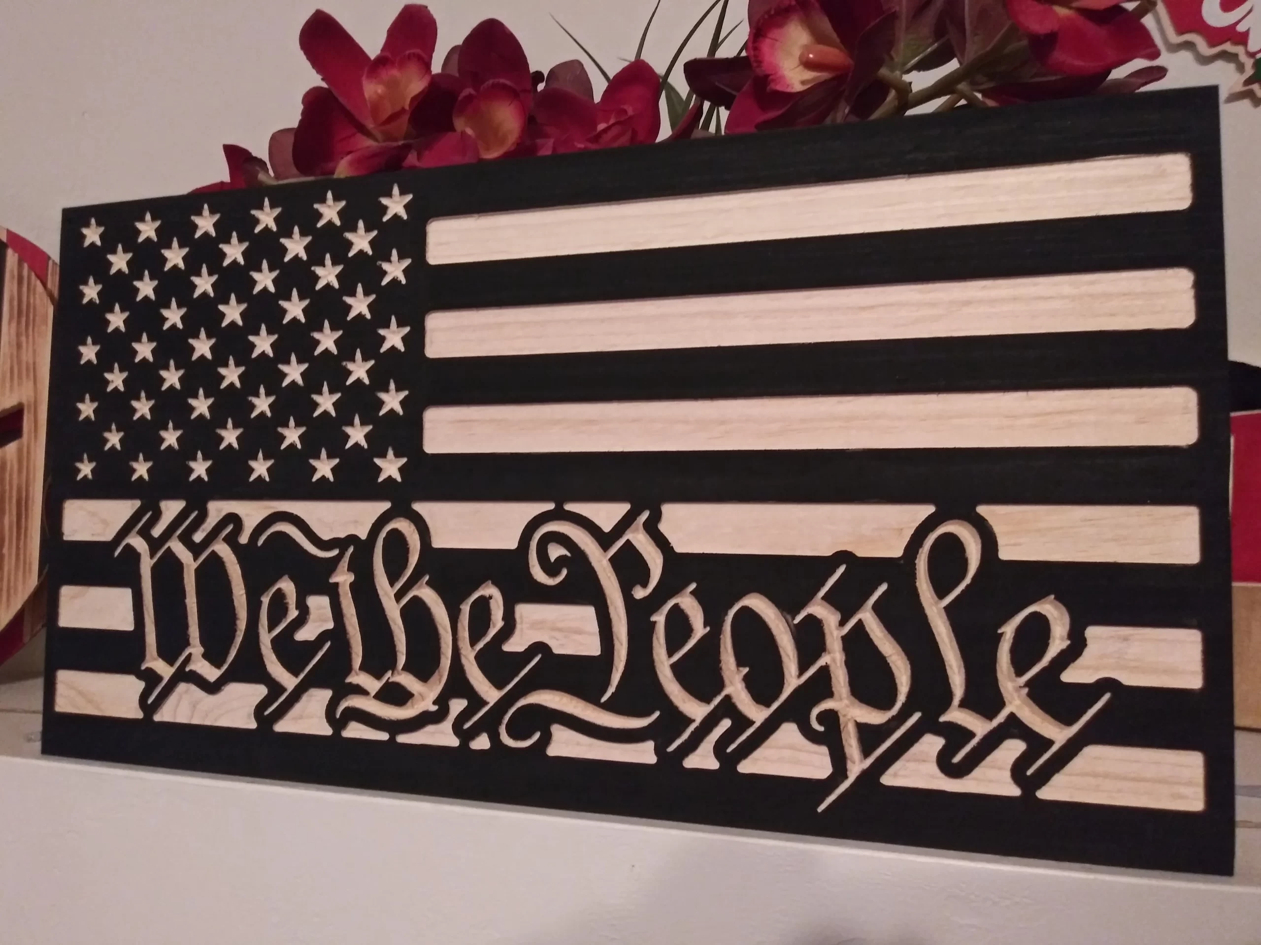 We The People Wood American Flag, Patriotic Wood Flag, Gift for a Veteran, CNC Milled Black American Flag.