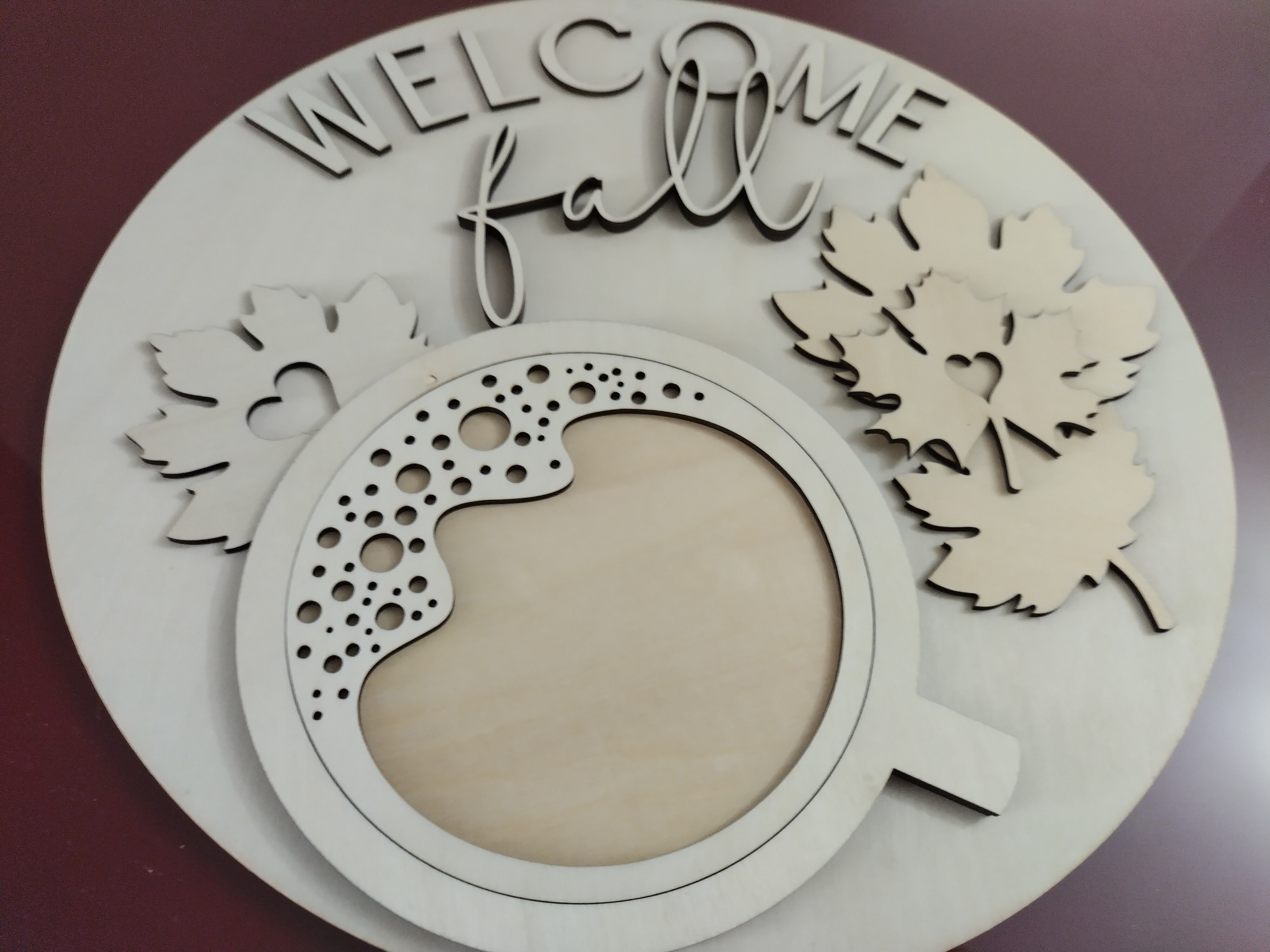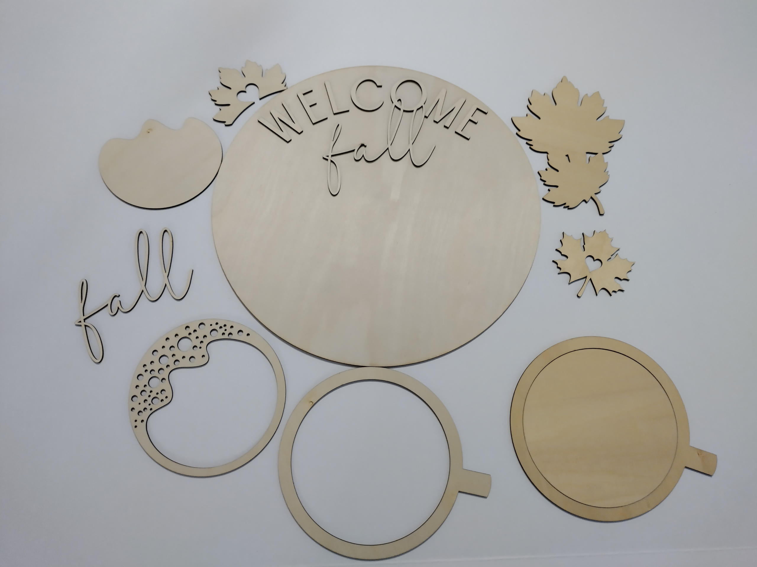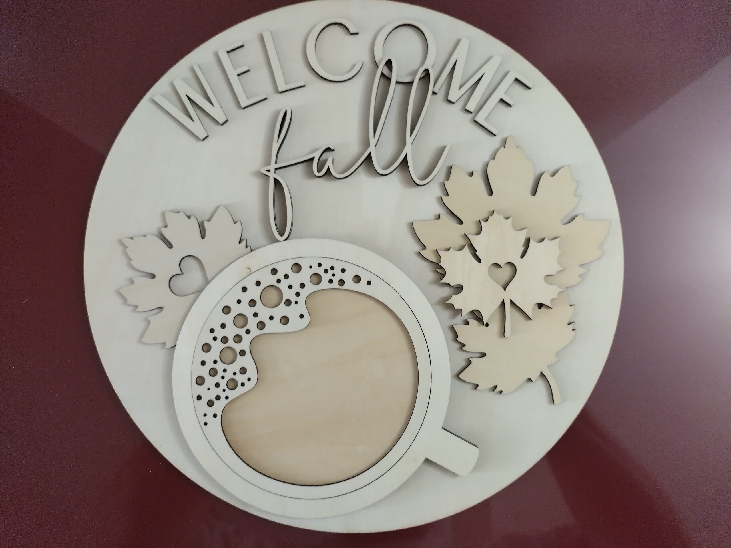 Welcome Fall Coffee Door Hanger, DIY Kit, Unfinished Wooden Door Round Sign